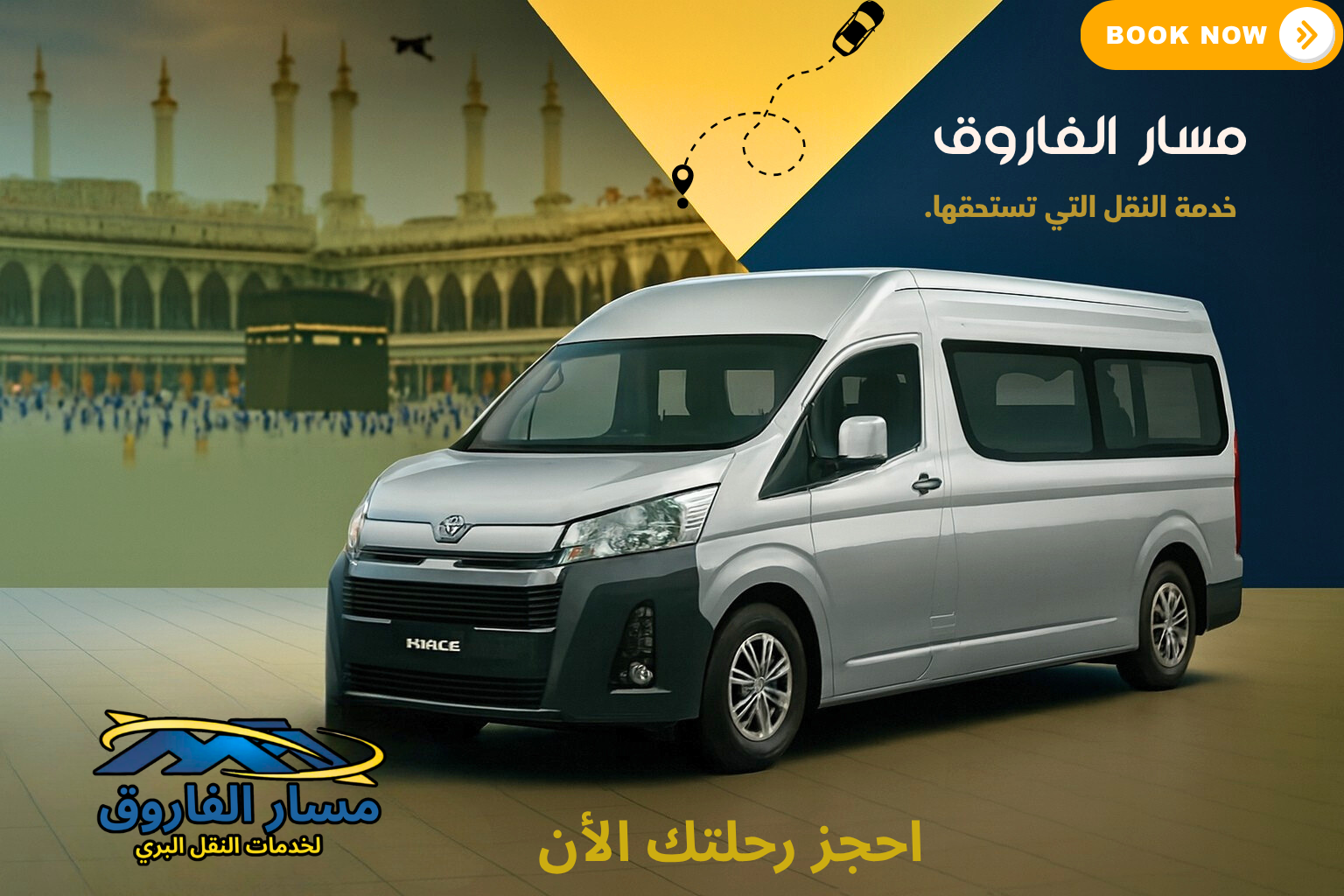 مسار الفاروق هي شركة سعودية متخصصة في نقل الركاب داخل المملكة العربية السعودية، بسيارات حديثة يقودها سائقون محترفون. نخدم الحجاج والمعتمرين والزوار والمقيمين، ونوفر رحلات بين مكة، جدة، المدينة المنورة، الطائف، والمطارات، إضافة إلى خدمات النقل الخاص حسب الطلب.