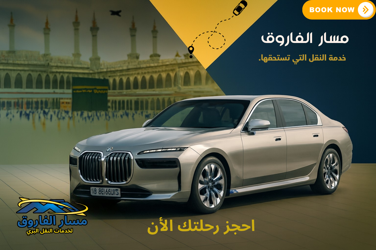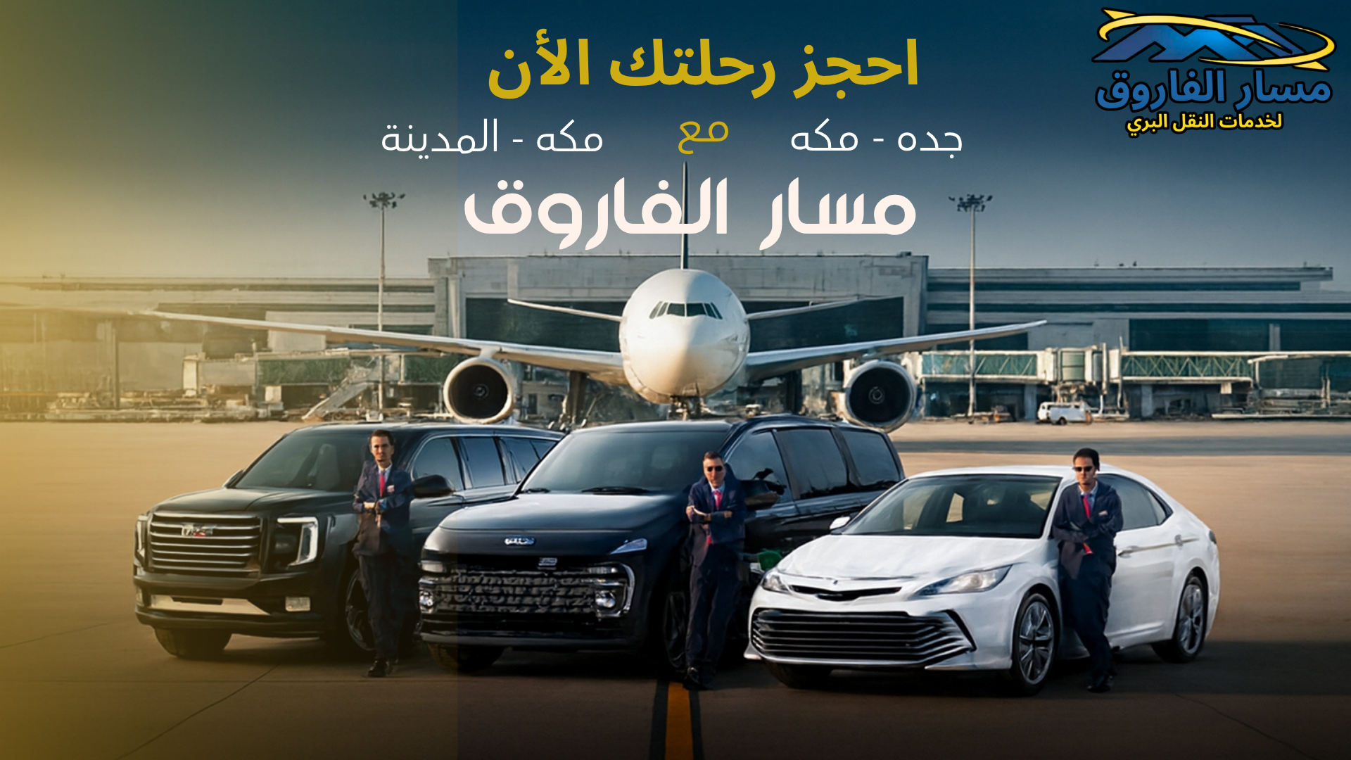 في مسار الفاروق نعتني بكل تفصيلة في رحلتك — من لحظة الحجز حتى وصولك لوجهتك بأمان وراحة. نقدم تجربة تنقل راقية تجمع بين الاحترافية، الرفاهية، والدقة في المواعيد، لتكون كل مشاويرك معنا عنوانًا للتميز.