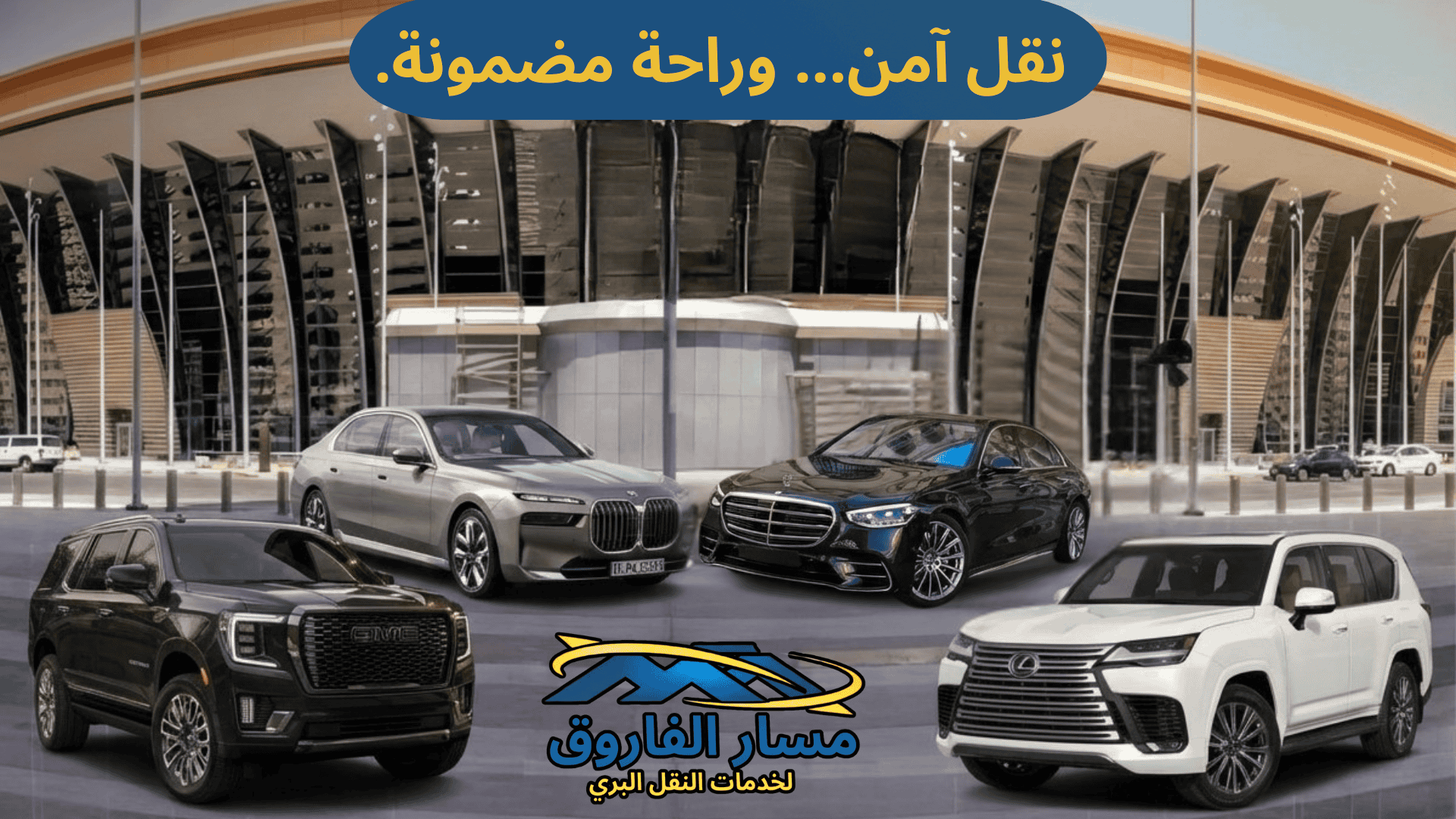 في مسار الفاروق نعتني بكل تفصيلة في رحلتك — من لحظة الحجز حتى وصولك لوجهتك بأمان وراحة. نقدم تجربة تنقل راقية تجمع بين الاحترافية، الرفاهية، والدقة في المواعيد، لتكون كل مشاويرك معنا عنوانًا للتميز.